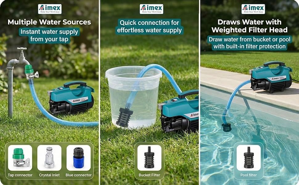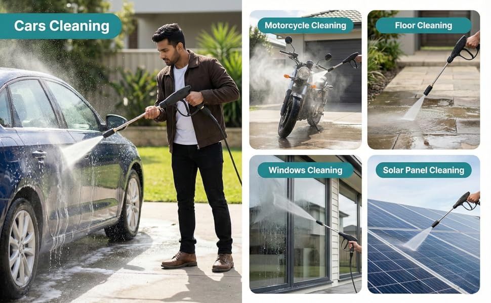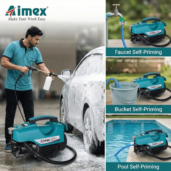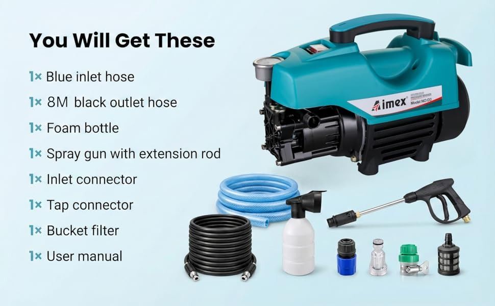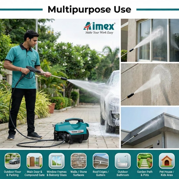 Built for convenience and versatility, this portable power washer comes with an 8-meter hose pipe, allowing better reach when cleaning cars, bikes, patios, driveways, walls, and garden furniture. Its compact design makes storage and handling easy, while the powerful spray system delivers deep cleaning results with less effort. Ideal for regular vehicle maintenance and household cleaning, the Aimex D3 pressure washer provides dependable performance for everyday use.