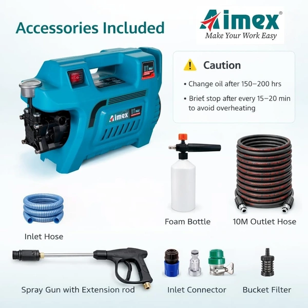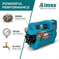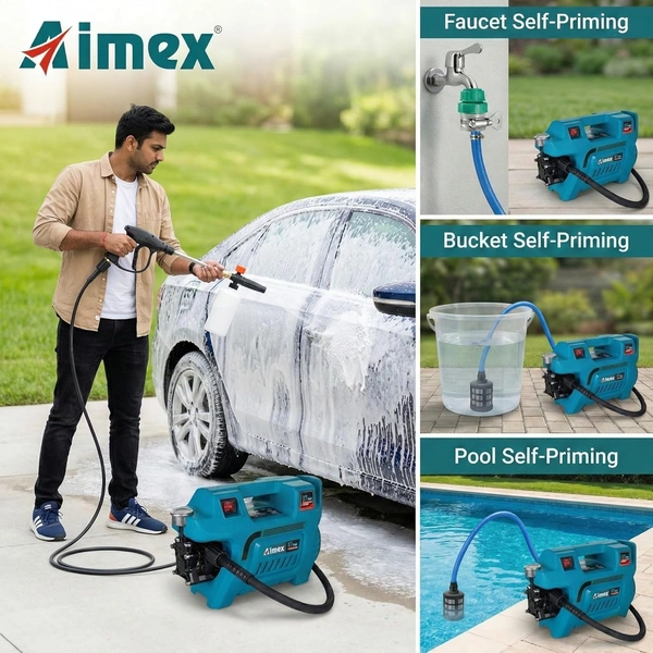 The Aimex D7 Plus Electric High Pressure Car Washer is a powerful cleaning machine designed for efficient car and home maintenance. Equipped with a 2200W copper winding motor, it delivers strong and stable performance while generating up to 150 bar high-pressure water output to remove stubborn dirt, mud, grease, and grime quickly. The durable motor design ensures reliable operation with better heat resistance and longer lifespan.