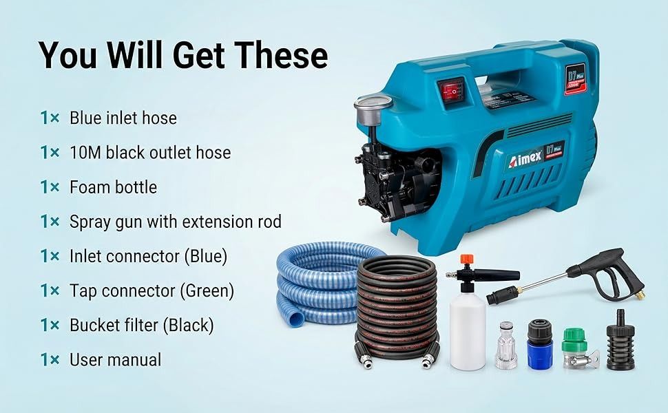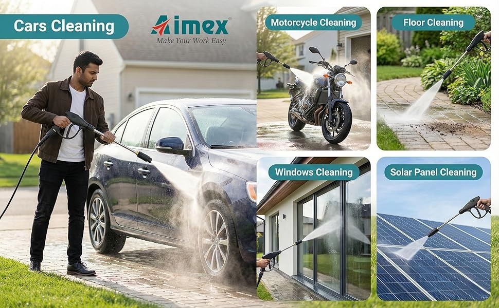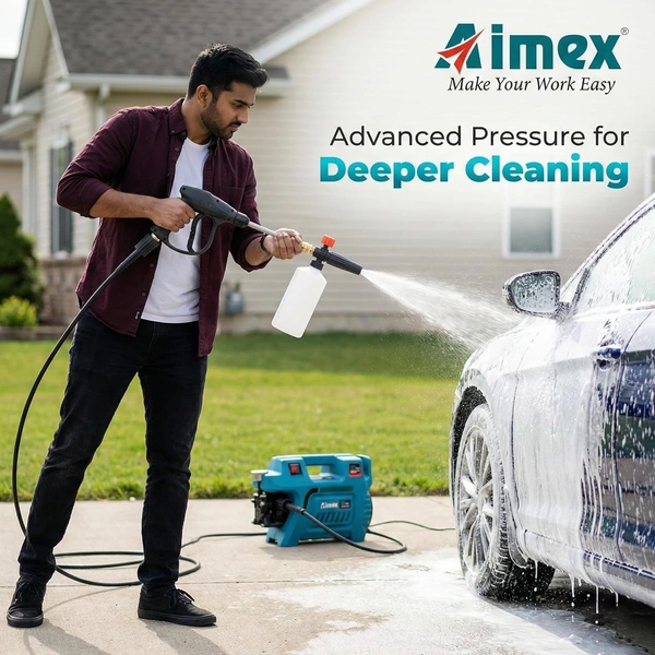 Designed for versatile cleaning, this pressure washer is ideal for cars, bikes, patios, driveways, garden furniture, and outdoor surfaces. Its portable compact design and long high-pressure hose provide better reach and convenience, allowing you to clean larger areas without frequently moving the machine. Whether for regular vehicle washing or heavy outdoor cleaning, the Aimex D7 Plus delivers powerful, efficient, and time-saving performance.
