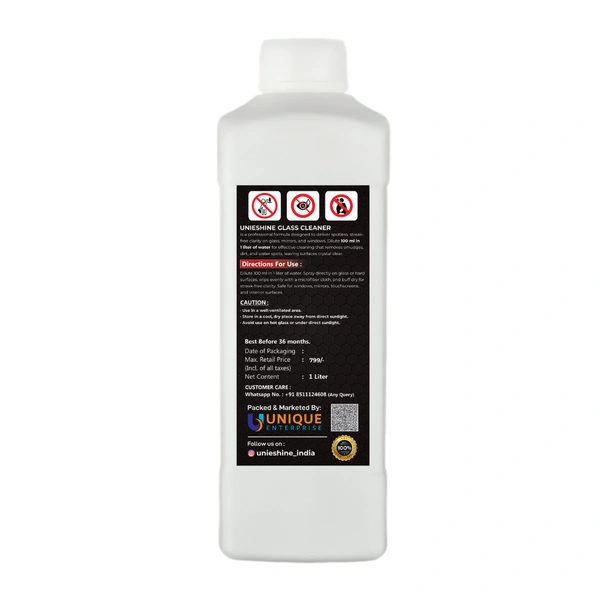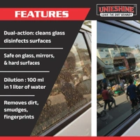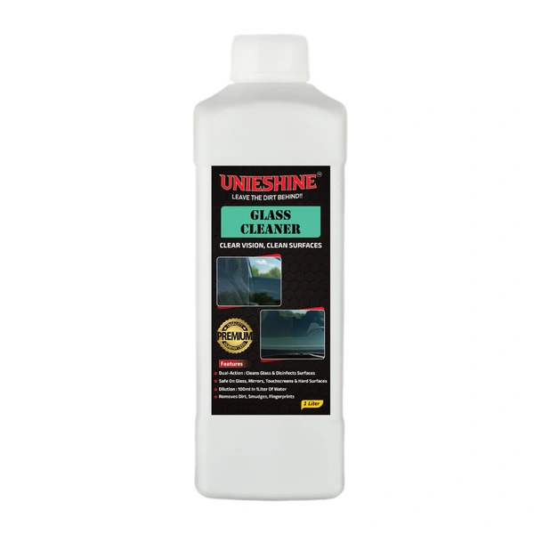 Keep your glass surfaces crystal clear with UNIESHINE 1L Concentrated Glass Cleaner, a high-performance formula designed for streak-free results. The powerful cleaning agents effectively remove dust, fingerprints, smudges, and road grime from glass surfaces, leaving them spotless and transparent.
