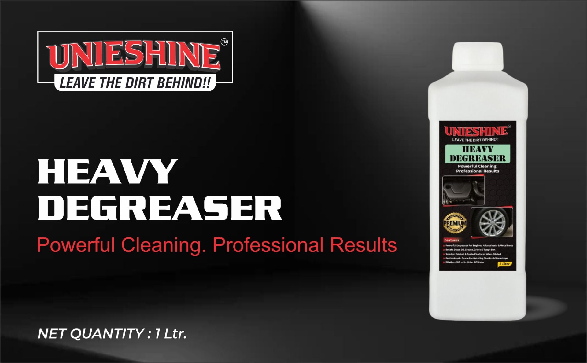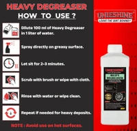 UNIESHINE 1L Concentrated Heavy Degreaser is a powerful cleaning solution designed to remove tough grease, oil, and grime from engine bays, alloy wheels, and other heavily soiled surfaces. Its concentrated formula delivers deep cleaning performance while making vehicle detailing easier and more effective.