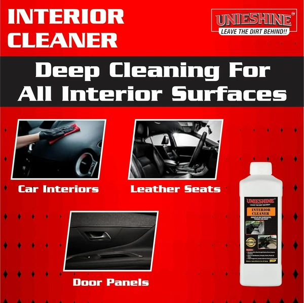 Maintain a clean and fresh car interior with UNIESHINE 1L Concentrated Interior Cleaner, specially formulated to remove stubborn dirt, dust, stains, and grime from interior surfaces. The powerful cleaning formula works effectively on dashboards, plastic trims, vinyl, seats, and upholstery, helping restore the original clean appearance of your vehicle’s interior.