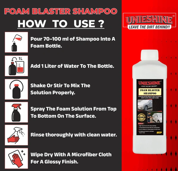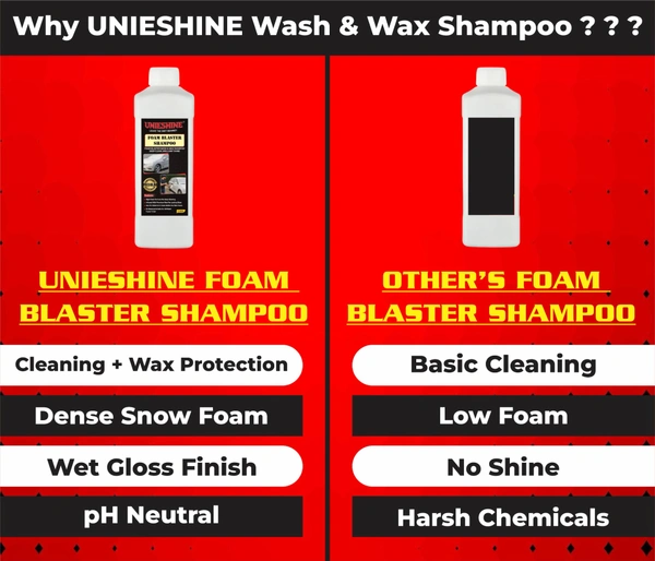 UNIESHINE Foam Wash Shampoo leaves your vehicle clean, shiny, and streak-free after every wash.