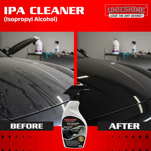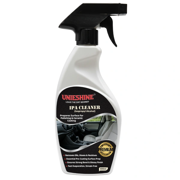 UNIESHINE 500ML IPA (Isopropyl Alcohol) is a fast-evaporating surface prep spray designed for car and bike detailing. It helps remove oil, dirt, grime and wax residues, supporting cleaner surfaces before polishing, coating, correction work or maintenance cleaning.