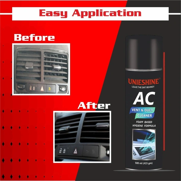 UNIESHINE AC Vent and Duct Cleaner 500ML is an advanced AC cleaning foam spray formulated to deeply clean car and home air conditioning systems. This powerful AC coil and vent cleaner penetrates into ducts and vents to remove accumulated dust, dirt, bacteria, and odor-causing contaminants.