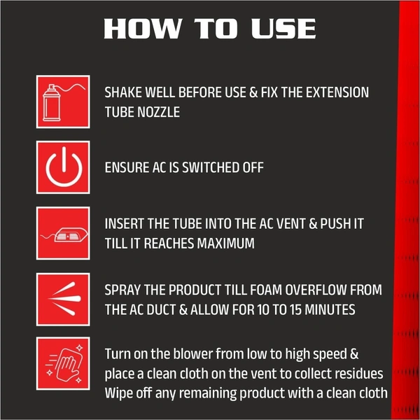 The fast-acting foam expands inside vents and ducts, breaking down dirt and residue before drying without leaving harmful buildup. It is suitable for car AC systems, home split AC units, window ACs, and HVAC vents.