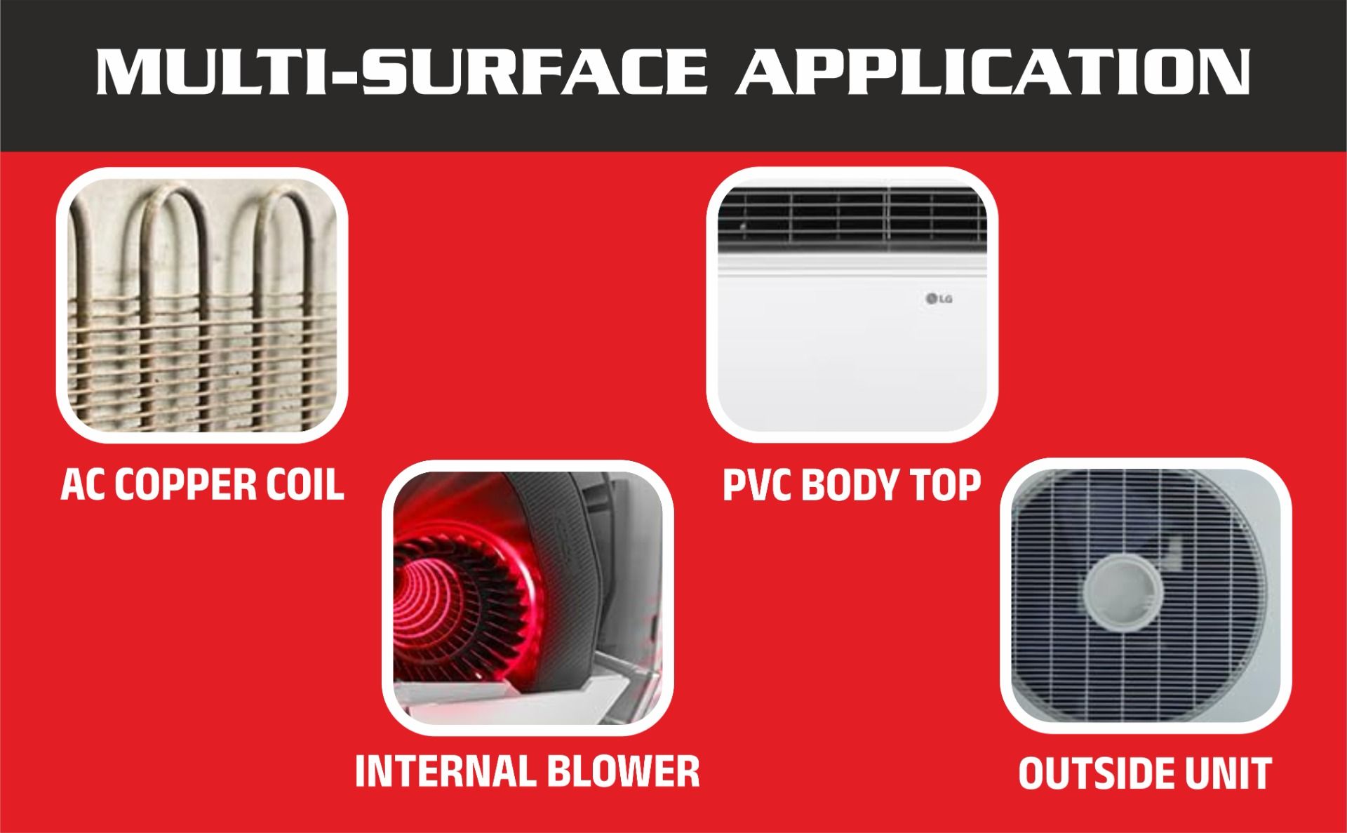 Application: AC vents, ducts, coils and air conditioning systems