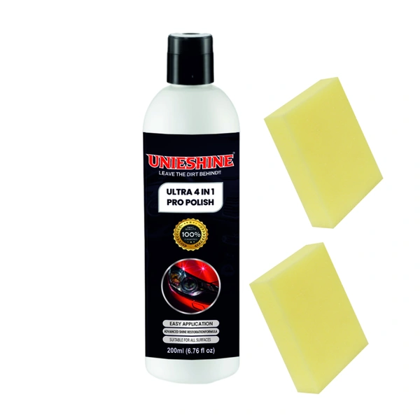 UNIESHINE All in One Car Polish helps restore appearance, enhance shine, support protection of plastic and fibre surfaces, and simplify detailing with a single multipurpose product.