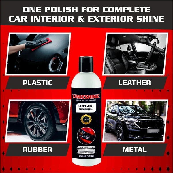 UNIESHINE All in One Car Polish 200ml Multipurpose Car Bike Polish Dashboard Plastic Fibre Restorer Polish Cream with Applicator Sponges for Shine Protection