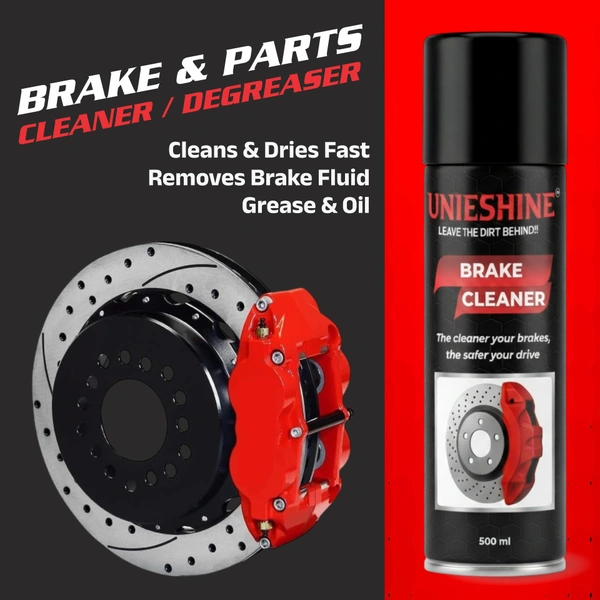 UNIESHINE Brake Cleaner Spray 500ML – Fast-Drying Disc & Brake Parts Cleaner for Car and Bike | Residue-Free Degreaser, Anti-Rust Support & Noise Reduction