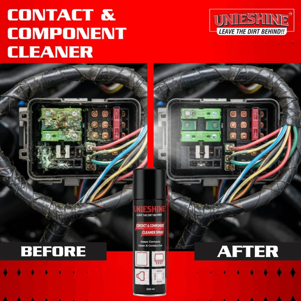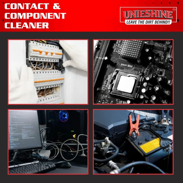 Clean sensitive electrical and electronic components safely with UNIESHINE Contact & Component Cleaner Spray 500ML, a professional-grade fast-evaporating cleaner formulated for electronics maintenance, automotive electrical systems, and precision components.