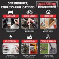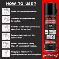 UNIESHINE Multipurpose Silicone Spray is a versatile silicone-based lubricant and protectant designed to reduce friction, repel moisture, help prevent rust, and protect surfaces without leaving a heavy sticky residue. Suitable for automotive parts, rubber seals, plastic components, gym equipment, tools, and industrial applications, it supports smooth operation and long-lasting maintenance.