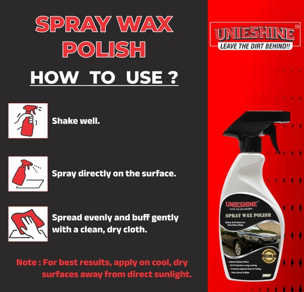 Enhance shine and protect your vehicle’s finish with UNIESHINE Premium Liquid Wax Polish Spray 500ML, a convenient spray wax designed for fast detailing and routine paint maintenance.