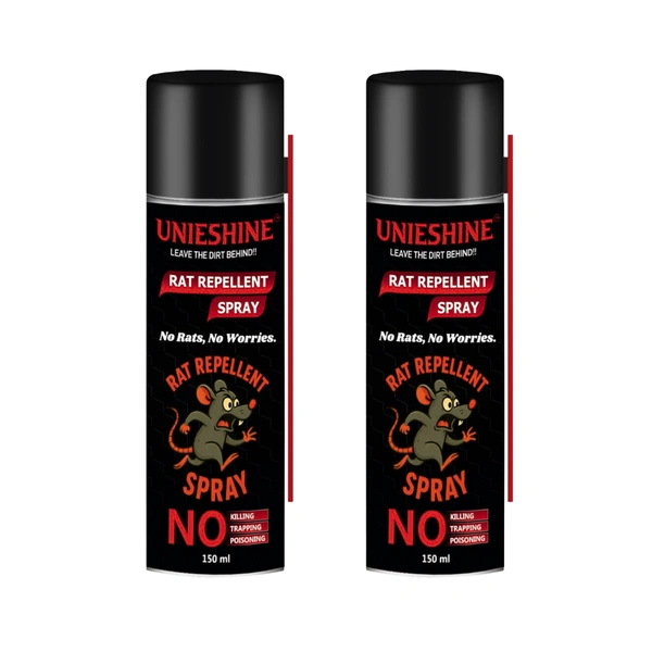UNIESHINE Rat Repellent Spray Pack of 2 (150ML Each) | Natural Rodent Deterrent for Car Engine, Home, Garage & Garden | Long-Lasting Protection | Safe for Pets & Children