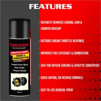 UNIESHINE Throttle Body Choke & Carburettor Cleaner Spray is a fast-acting engine intake cleaner formulated to remove carbon deposits, varnish, gum, and dirt from throttle bodies, carburettors, air intake components, and chokes. It helps improve throttle response, support smooth idling, restore acceleration, and promote better fuel efficiency in petrol and diesel engines.