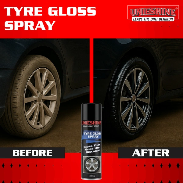 UNIESHINE Tyre Gloss Spray 500ML – Car & Bike Tire Shine Protectant | Long-Lasting Wet Look Finish, UV Resistant, Non-Sticky Rubber Dressing