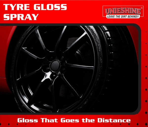UNIESHINE Tyre Gloss Spray is a premium tire shine and rubber dressing designed to enhance tire appearance with a rich wet look finish while helping protect rubber from fading, drying, and environmental exposure. Its non-sticky easy-spray formula delivers long-lasting gloss for car and bike tires without greasy residue.