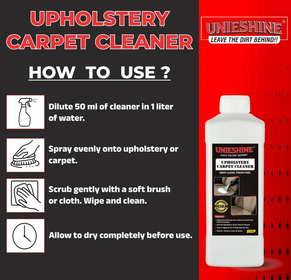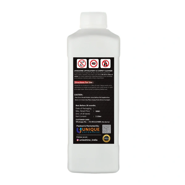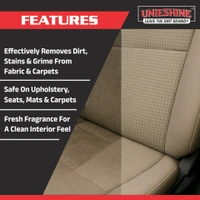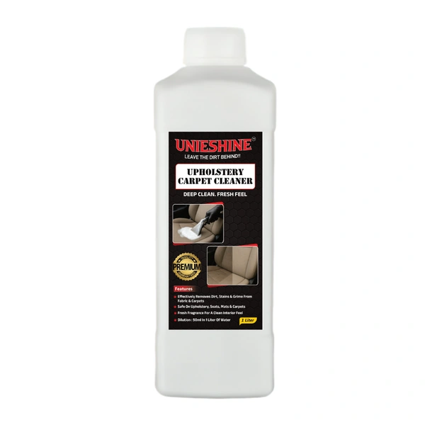 Keep your fabric surfaces spotless with UNIESHINE Upholstery & Carpet Cleaner, a powerful concentrate formulated to remove deep-seated dirt, stains, and grime from upholstery and carpets. The advanced cleaning formula penetrates fabric fibers to lift stubborn stains while maintaining the original texture and appearance of the material.