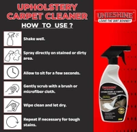 UNIESHINE Upholstery & Carpet Cleaner helps remove stains, reduce odors, refresh soft surfaces and support regular maintenance of fabric interiors.